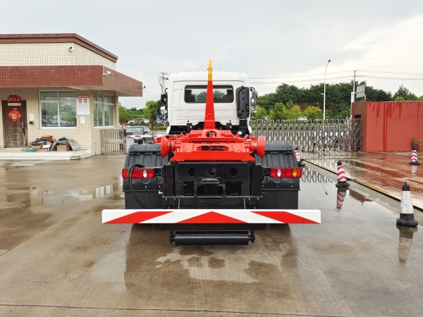 1.該車用于垃圾的收集清運,主要專用裝置為勾臂;2.選裝后部斜邊結(jié)構(gòu),選裝后部管接頭,選裝后部支腿結(jié)構(gòu),選裝不同勾臂結(jié)構(gòu),選裝備胎架,選裝液壓油箱位置,選裝控制盒位置;整車長(mm)/軸距(mm)的對應(yīng)關(guān)系分別為:7300/4500,7500/4700;3.側(cè),后防護(hù)材料均采用Q235碳鋼,連接方式為焊接加螺栓連接,后部防護(hù)斷面尺寸(mm):120×60,離地高度470mm;4.隨底盤選裝D6.7NS6B230,B6.2NS6B210,B6.2NS6B230,DDi50E190-60,D4.5NS6B190,對應(yīng)的油耗值(L/100km)分別為:23.7,23.8,23.8,23.9,24.4;5.ABS型號/生產(chǎn)廠家:3631010-C2000/東科克諾爾商用車制動系統(tǒng)(十堰)有限公司,ABS 8/東科克諾爾商用車制動系統(tǒng)(十堰)有限公司, 4460046450/威伯科汽車控制系統(tǒng)(中國)有限公司,J ABS/焦作博瑞克控制技術(shù)有限公司,安裝帶有衛(wèi)星定位功能的行駛記錄儀;6.隨底盤選裝高度不同的駕駛室;選裝不同部件布局;選裝前霧燈;選裝駕駛室頂部裝飾燈;選裝駕駛室前面罩;選裝前保險杠及前部燈具,選裝后視鏡;選裝后部燈具;駕駛室前臉擾流罩為選裝件;駕駛室臥鋪側(cè)窗選裝裝飾板;選裝踏步結(jié)構(gòu);選裝后背式排氣管.該車型可選裝ETC車載裝置. |